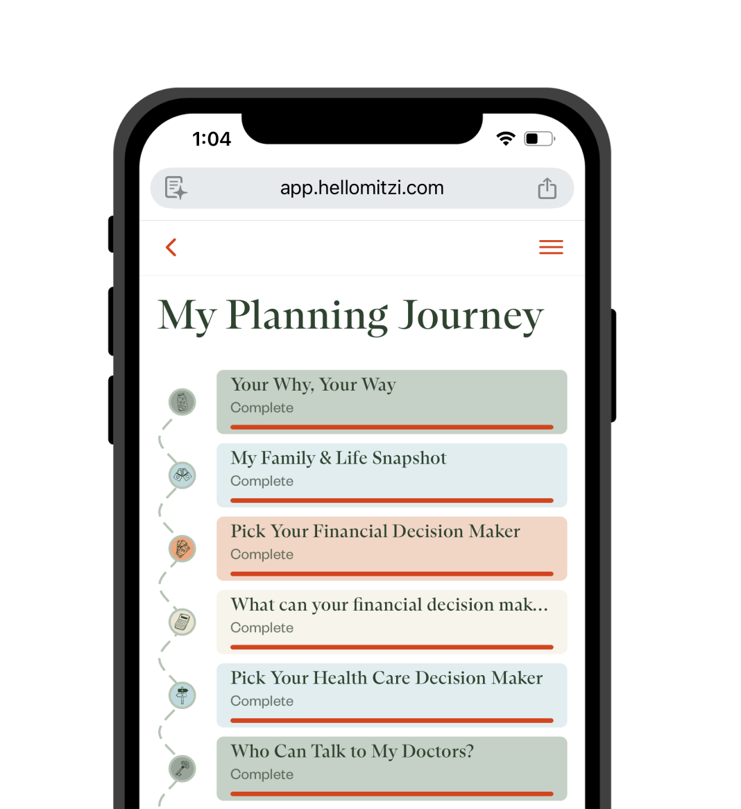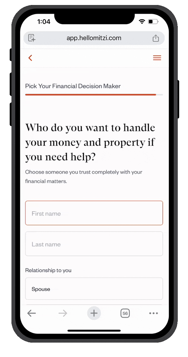 The questions you've been avoiding? They're not as scary as you think. Mitzi walks you through every decision in plain English, with context and guidance along the way so you always know what you're choosing and why.