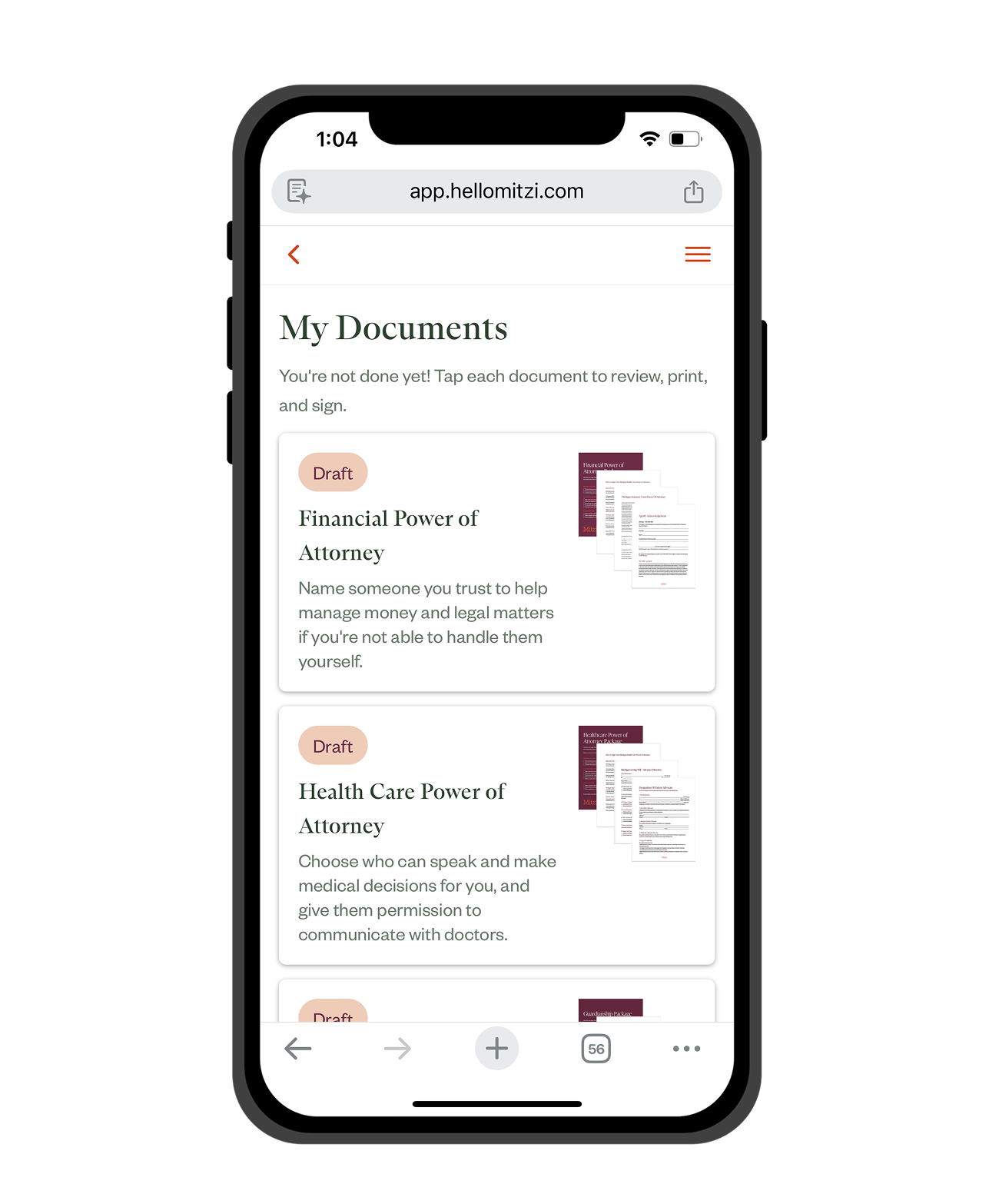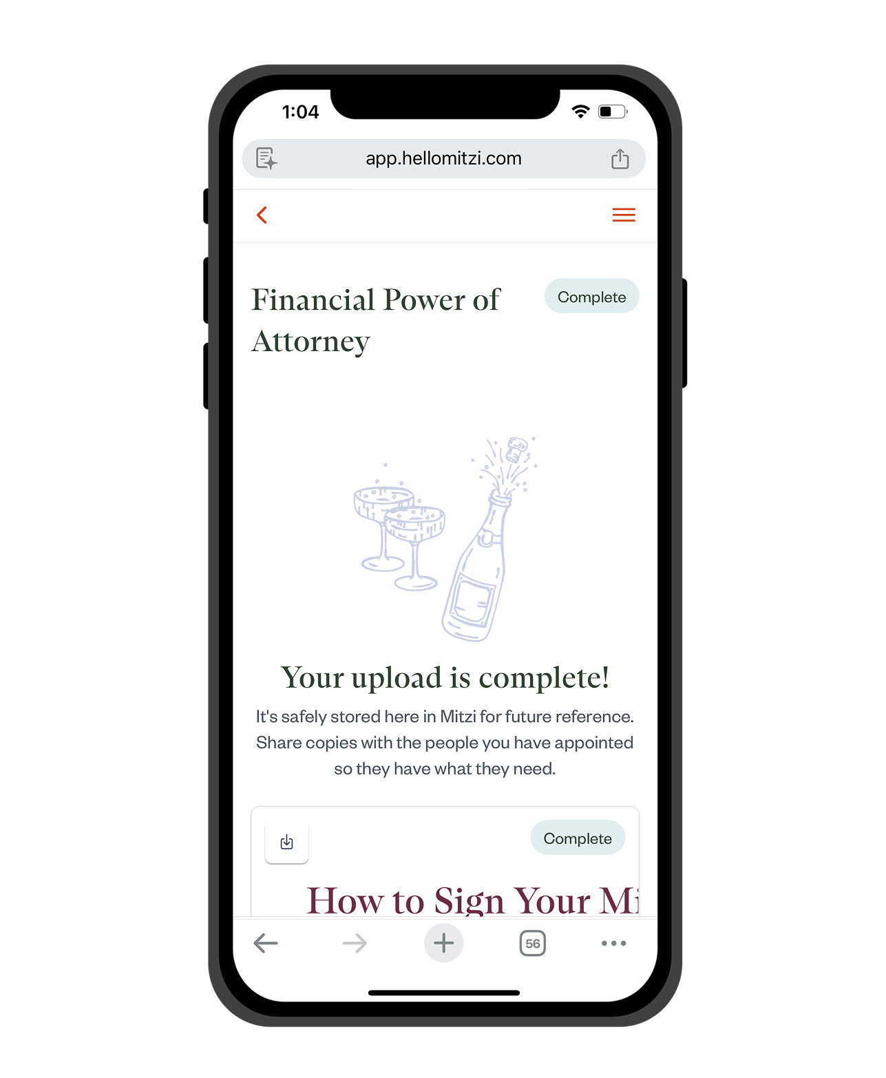 Download your documents, take the steps to get them properly signed, and store everything securely in your Mitzi vault.